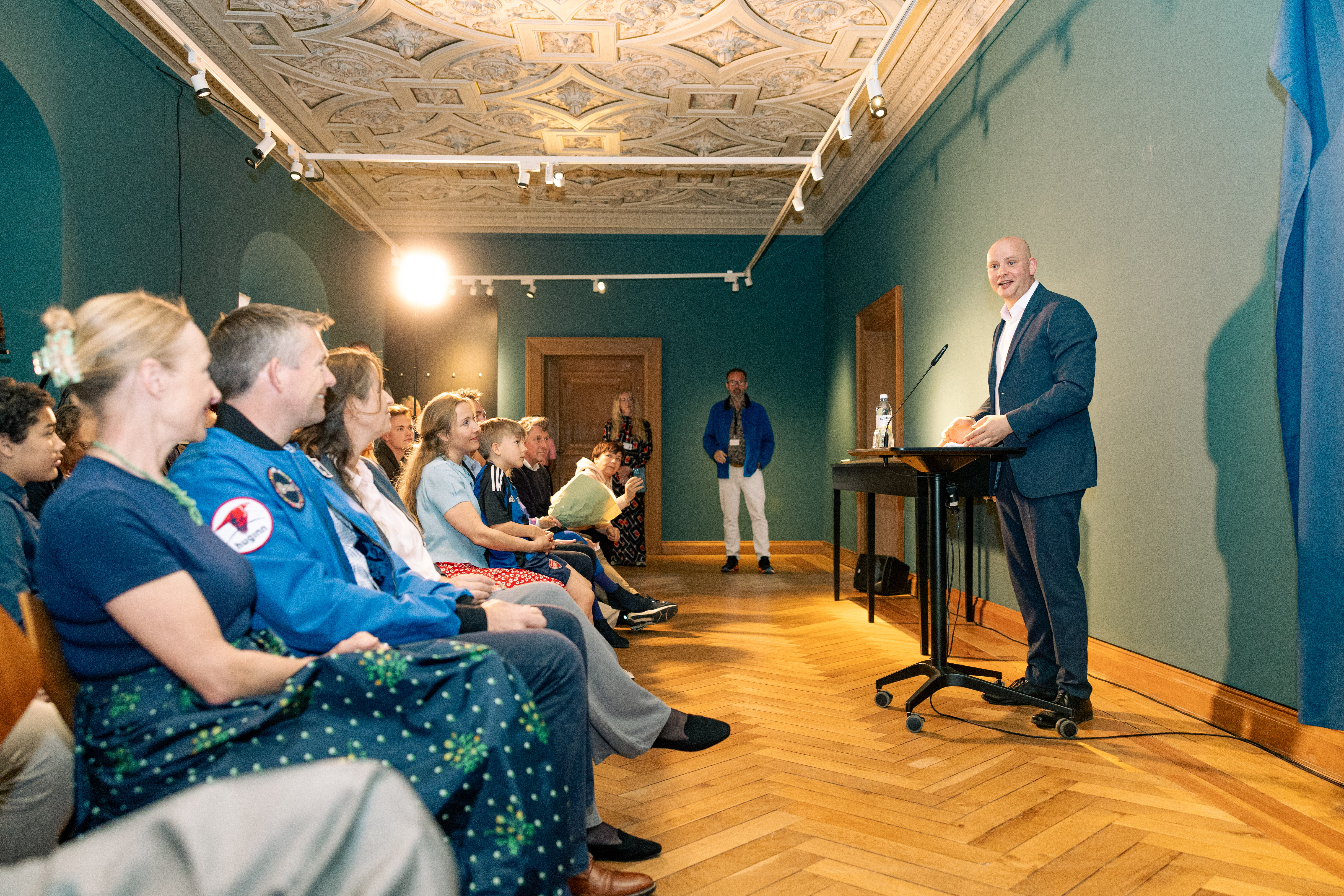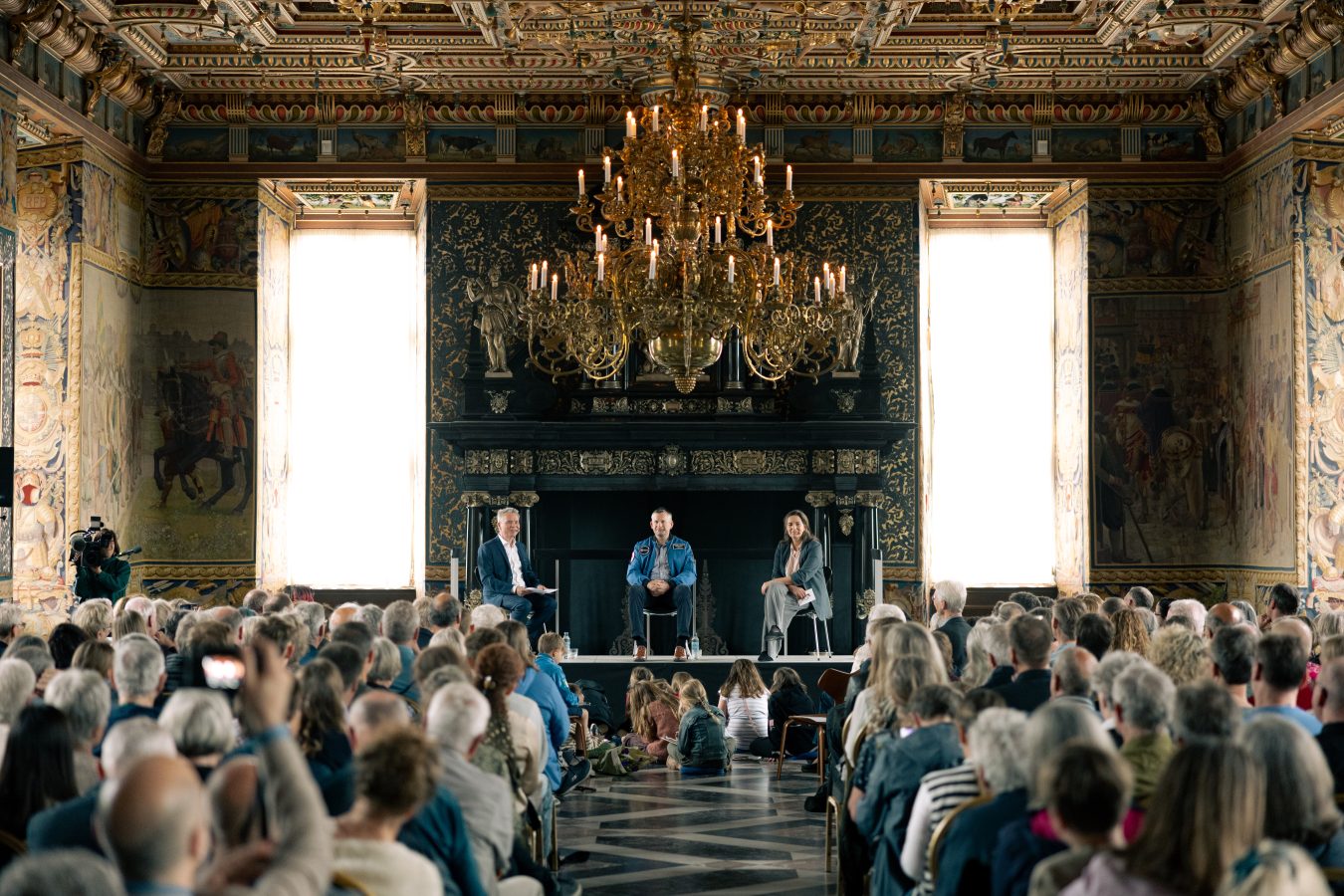 Andreas Mogensen afslørede selv – sammen med kulturminister Jakob Engel-Schmidt – astronautportrættet. Efter portrætafsløringen var en oplagt Mogensen gæst i ‘Talk med Tore Leifer’ i Riddersalen sammen med Frederiksborgs samlings- og udstillingschef, Mette Houlberg Rung. Her fortalte Andreas Mogensen om praktikaliteter i rummet, og hvor mange gange på et almindeligt døgn, det blev “nat” på ISS. Svarene kan også høres i museets podcast. Arrangementet blev nemlig optaget til podcasten PORTRÆT, episode 59.