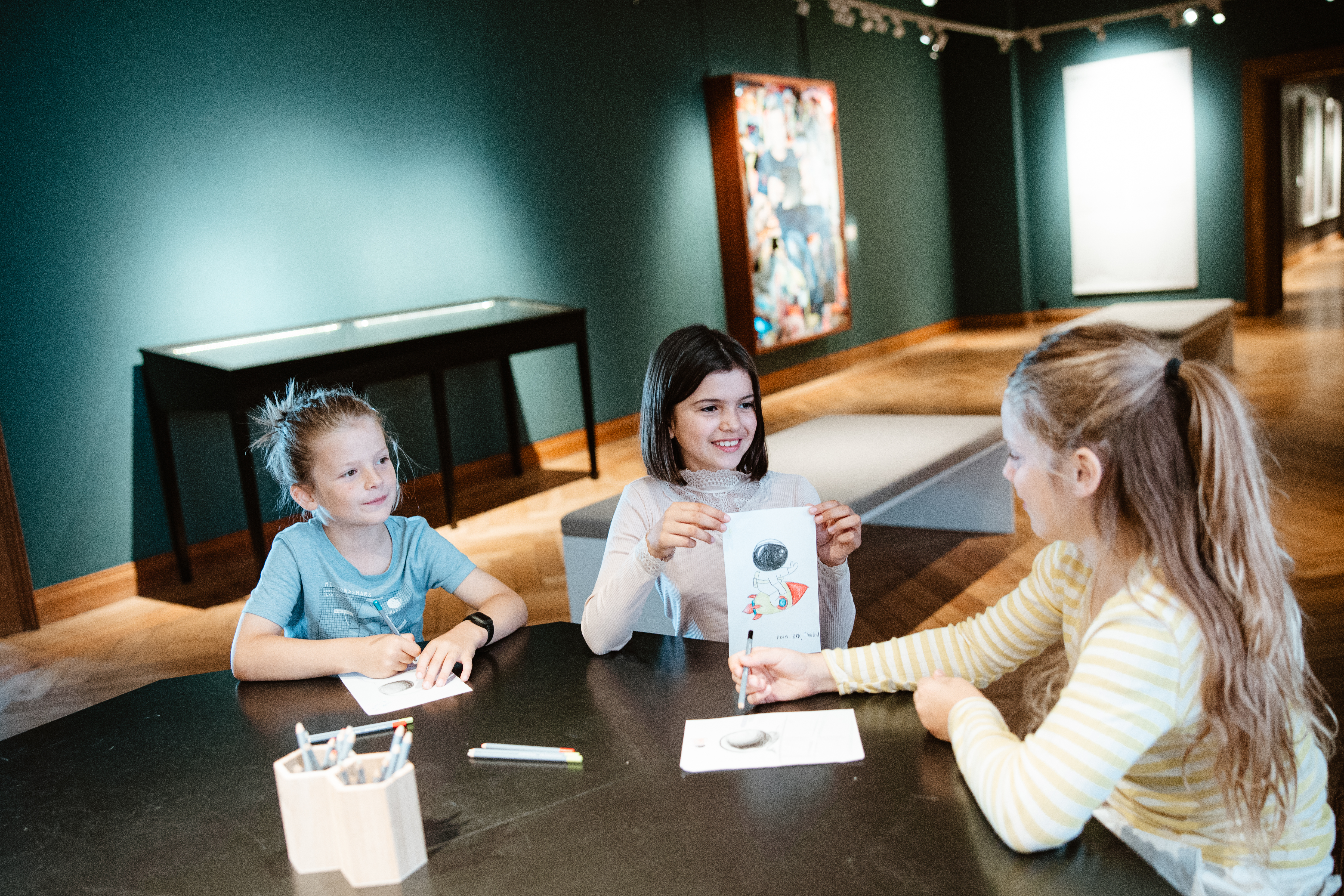Vi indbyder børn, og voksne hvis de har lyst, til at skitsere deres bud på et astronautportræt af Andreas Mogensen. Måske svæver han i Cupola. Måske sidder han i rumraketten, eller måske sidder han under en stjernehimmel. Tegnebordet er fortsat en fast del af Andreas Mogensen-udstillingen.