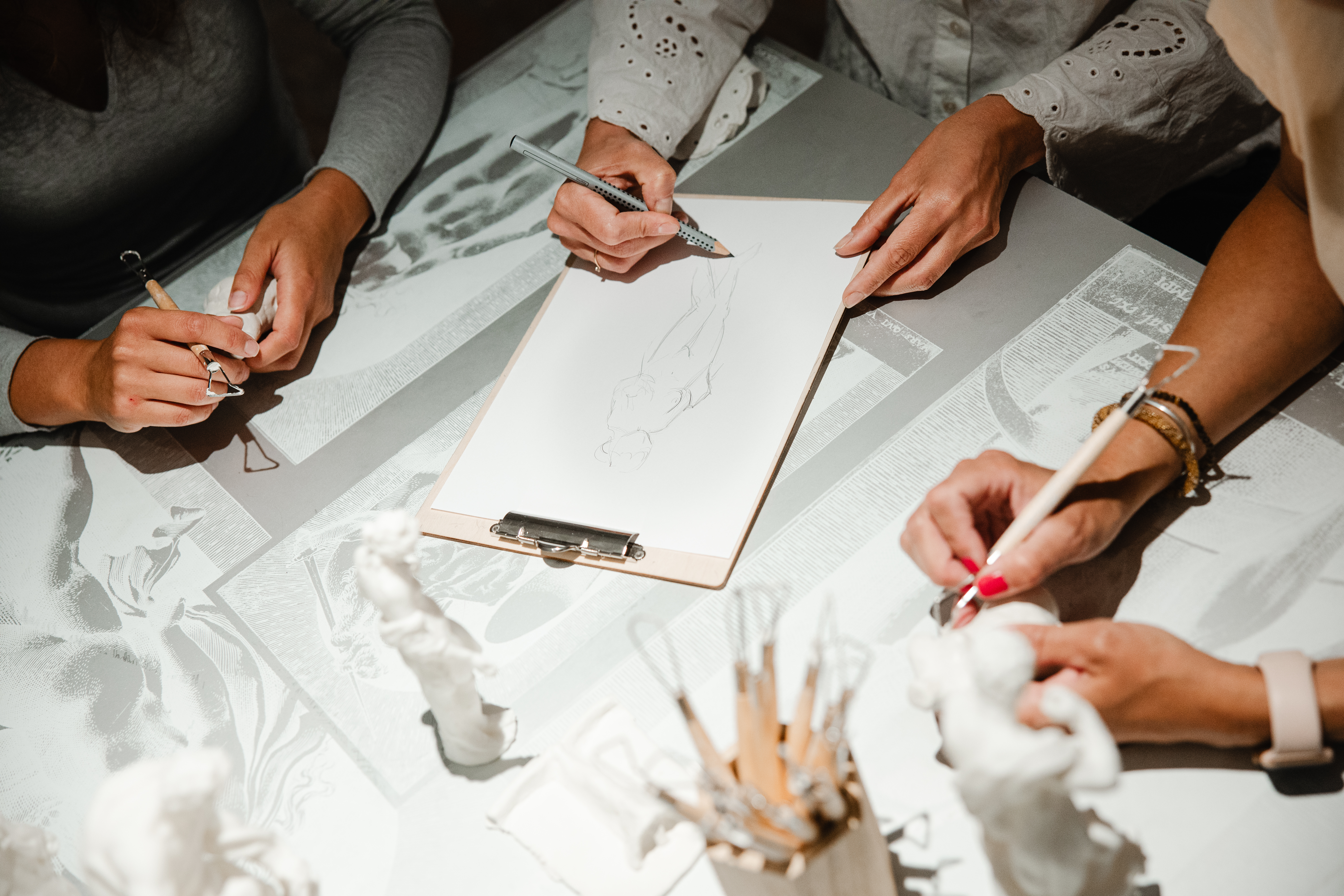 I udstillingen inviteres børn og voksne til at gøre fortidens og nutidens billedhuggere kunsten efter og lave skitser og forme skulpturer i selvhærdende ler. Skulpturværkstedet er åbent i ferieperioder, hvorimod skitsetegning er tilgængelig i udstillingen hver dag året rundt.