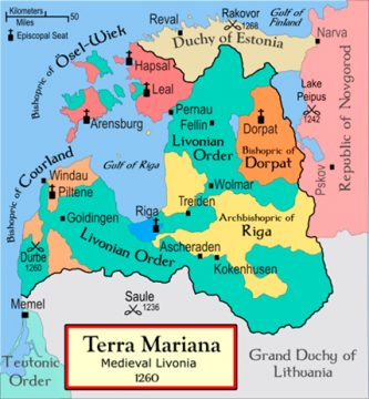 Det middelalderlige Livland i 1260. Kortet er taget fra Wikimedia Commons.