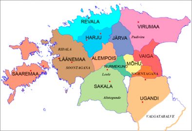 Estland i 1200-tallet, inddelt efter indfødte stammeområder. Kortet er taget fra Wikimedia Commons.