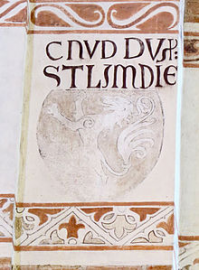 Kalkmaleri af Knuds våbenskjold fra Skt. Bendts kirke i Ringsted, hvor Knud blev begravet.