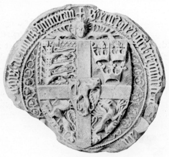 Erik af Pommerns nordiske unionssegl. I brug 1398-1435. Efter Danske kongelige Sigiller af Anders Thiset, København, 1917. Wikimedia Commons.