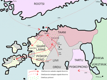 Kort over det store estiske oprør 1343. Kilde: Wikimedia Commons.