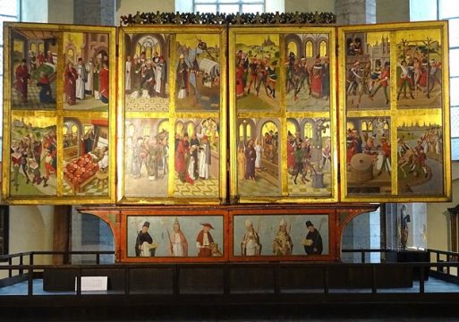 Altertavle fra højalteret i Niguliste Museum i Tallinn, fra Lübeckerkunstneren Herman Rodes værksted, 1478-1481. Wikimedia Commons.