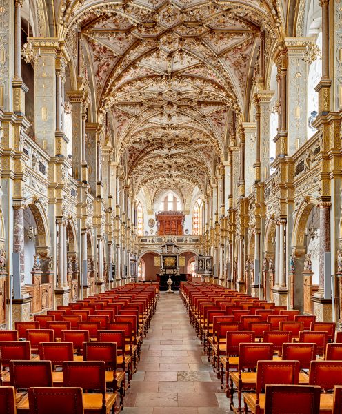 Der blev ikke sparet på noget; dygtige håndværkere blev hentet rundt om i Europa. Overalt i den treskibede kirke ses fantastiske udsmykninger: unikke intarsia-arbejder i stolestaderne, bemalet og forgyldt stuk i hvælvingerne, apostelfigurer i alle nicher og symboler på kongens opgaver og pligter i buerne. Alt sammen som en stærk understregning af kongens valgsprog: REGNA FIRMAT PIETAS (R F P), på dansk: “Fromhed styrker rigerne”