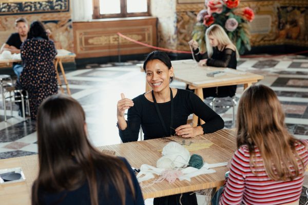 I Riddersalen deltog gæster i fællesvævning og hørte museets forskere fortælle om den kommende gobelinudstilling. I Prinsessefløjen kunne gæster fordybe sig i kunsten gennem slow looking-sessioner.