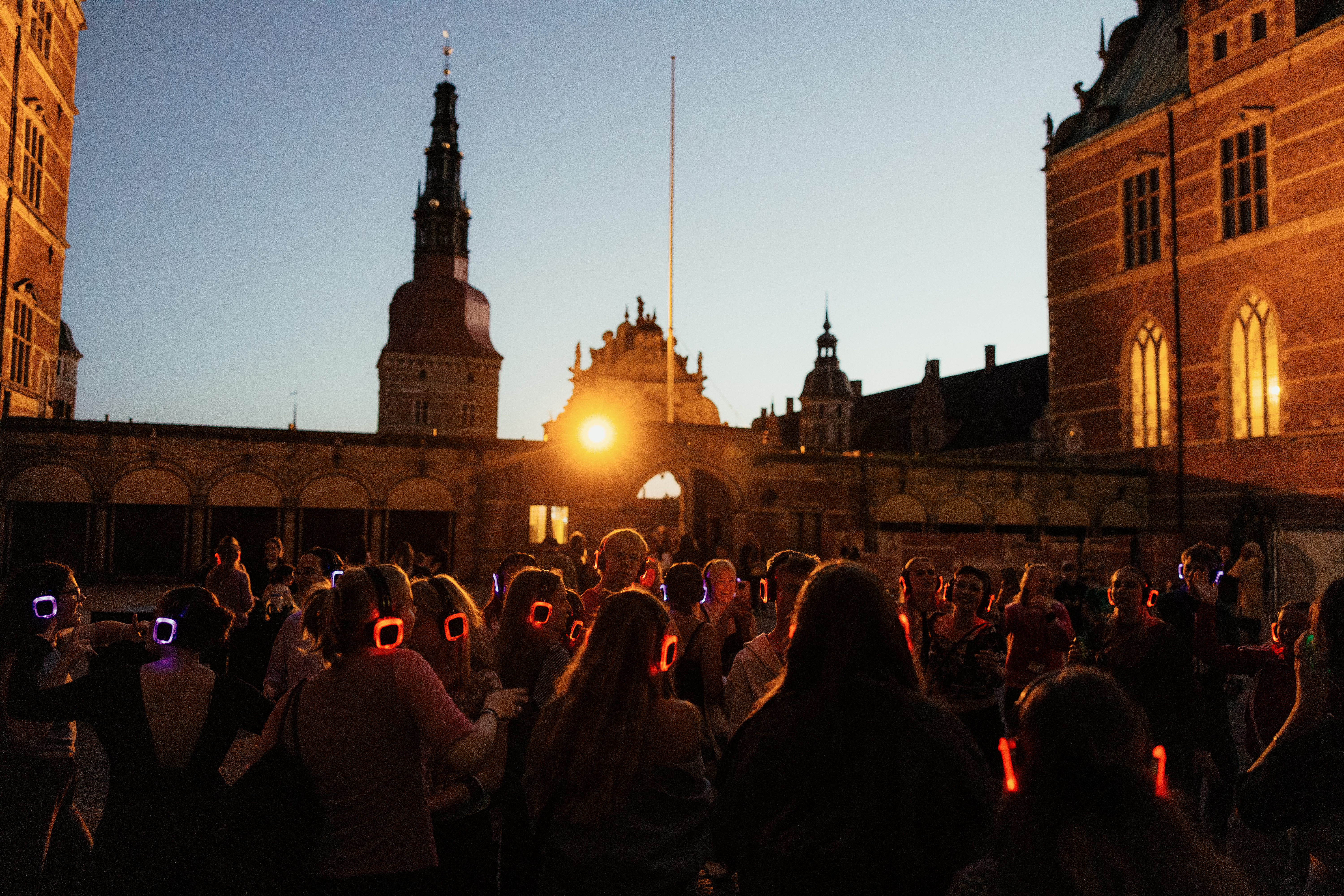 Aftenen bød desuden på koncert med Frederiksborg Kammerkor, specialølsmagning med brygmester fra Carlsberg Research Center og stemningsfuld belysning i Barokhaven og langs Staldgade. Børnene åbnede aftenen med silent disco i den indre slotsgård, mens de voksne senere overtog dansegulvet til tidens mest populære beats.