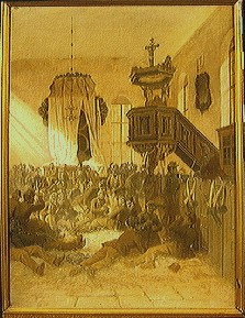 Danske soldaters indkvartering i Trinitatiskirken i Fredericia før slaget ved Fredericia