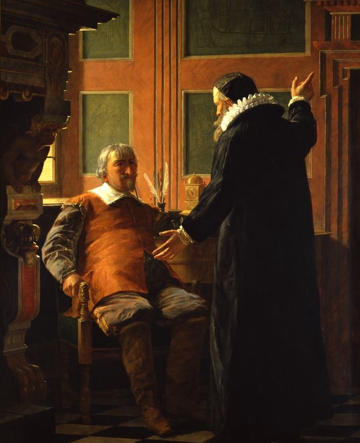 På Christian 4.’s tid var Ole Vind (1590-1646) sognepræst ved Vor Frue Kirke og øverste provst for Sjællands stift. I en af sine prædikener tordnede han mod det umoralske liv, som efter hans mening førtes ved hoffet, og da flere hoffolk overhørte præstens ord, kom det kongen for øre. Vind måtte på Christian 4.’s opfordring gentage sin prædiken på Rosenborg Slot, hvor kongen til alles overraskelse ikke irettesatte præsten, men derimod udnævnte ham til hofprædikant og konfessionarius. Grundtvigs digt om ”Mester Ole Vind”, der udkom i samlingen Roskilde Rim fra 1812, gjorde mødet mellem konge og præst landskendt, og Wilhelm Marstrand var den første, som kastede sig ud i en billedlig fremstilling af optrinet. Scenen foregår i Vinterstuen på Rosenborg. Ole Vinds prædiken er netop tilendebragt, og kongen har rejst sig fra sin stol og lægger myndigt, men beroligende venstre hånd på præstens skulder i anerkendelse af hans mod og vise ord. Ole Vind er på glimrende vis karakteriseret som en retskaffen fanatiker, der står med hænderne samlet på brystet, mens tre tilhørende hoffolk bagved kongen samt de to drenge i vinduesnichen spændt følger begivenhedernes gang. Det er den retfærdige og fromme Christian, motivet fremhæver, en mand som tåler at blive irettesat, når kritikken er berettiget. Christian 4. lever således op til sit kendte valgsprog, regna firmat pietas, fromhed styrker rigerne. Marstrand udførte endnu et forlæg med samme motiv og i samme størrelse. Den tydeligste forskel på de to oliemalerier er Ole Vinds positur. På Det Nationalhistoriske Museums billede virker præsten selvsikker, hvorimod han fremstilles mere ydmyg og underdanig på det andet. Netop kompositionen med de to hovedaktører har været udgangspunkt for et antal tegnede skitser. Tegninger fra henholdsvis Den Hirschsprungske Samling, Kobberstiksamlingen og i privateje afslører, at kongens beklædning og positur lå fast sammen med den bagvedstående stol, hvorimod kunstneren eksperimenterede med Ole Vinds fremtoning, interiøret og baggrundsfigurerne. Marstrands interesse for Christian 4.’s liv udsprang af hans arbejde i Roskilde Domkirke, hvor udsmykningen af den folkekære konges kapel i løbet af 1860’erne var ved at finde sin afslutning.