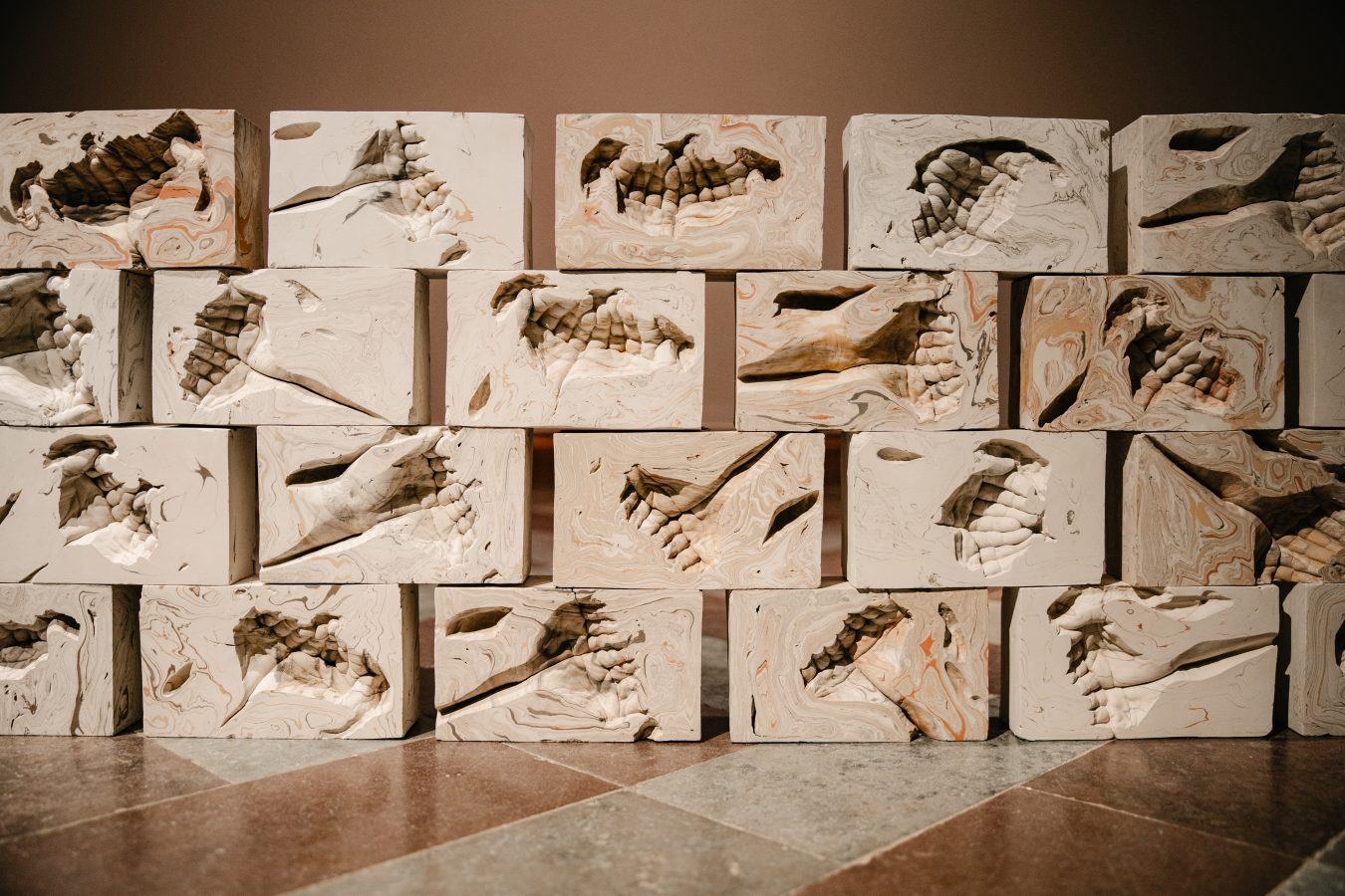 Disse håndaftryk, ladet med betydning og minder, har Stockholm brugt til at fremstille murstenene i værket “By Hand”. Ved at trykke håndformen ned i vådt ler har han skabt en fysisk manifestation af sin sorg- og erindringsproces.