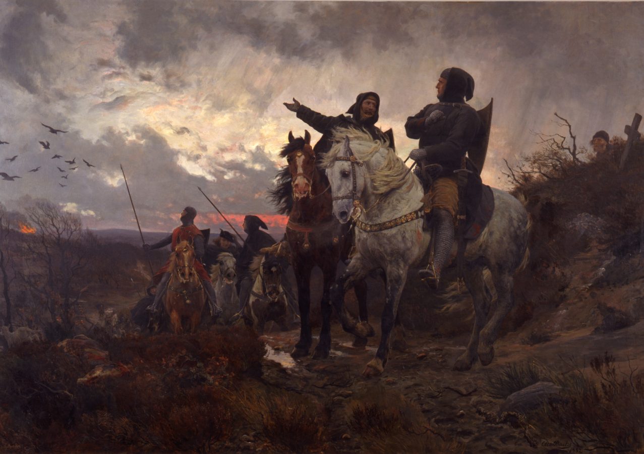 Museumsgæsten, der i 1882 så Otto Baches maleri af de flygtende mordere, kunne gyse over den dramatiske middelalder, hvor ufred hærgede. Men gæsten har også kunnet glæde sig over at leve i moderne tider med fred og fremskridt. Ingen dansk konge blev myrdet efter 1286, modsat lande som Frankrig, Sverige – og Rusland, hvor tsaren blev myrdet året før maleriet, 1881.