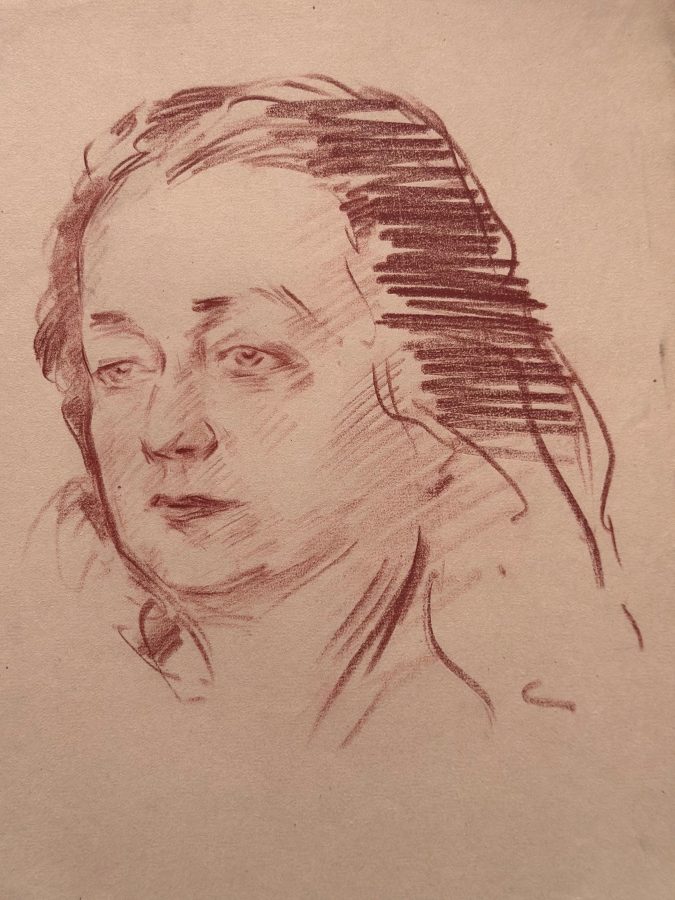 Portrættet (udateret) er lavet af Otto C(hristensen), som 1931-80 var en meget flittig tegner på B.T. og Berlingske Tidende. Frederiksborg har en stor samling af hans tegninger.