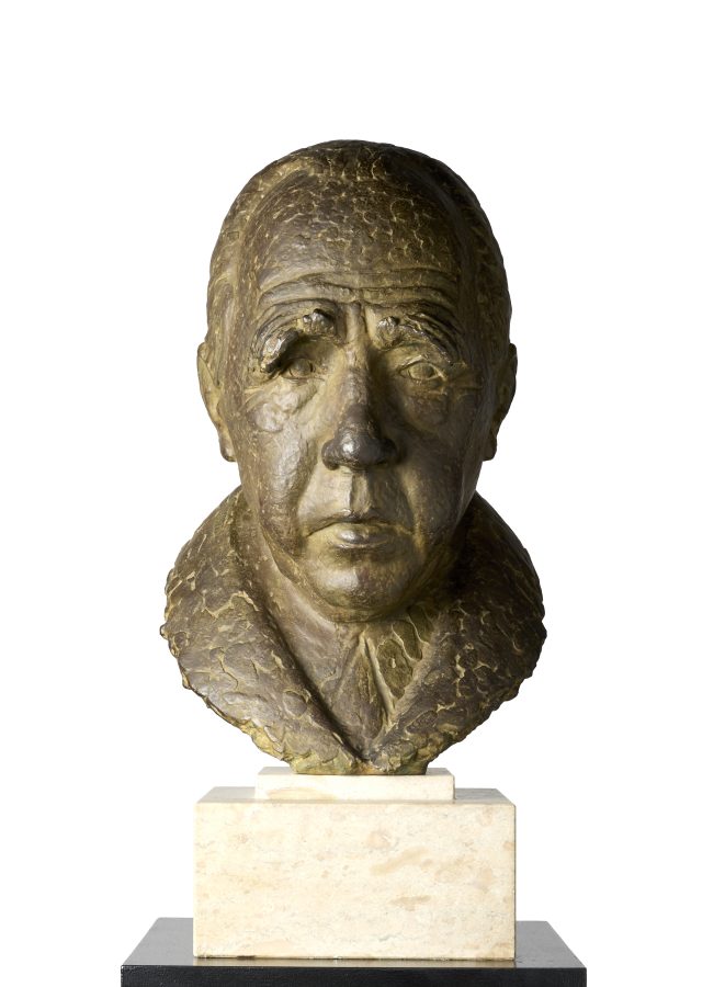 Dernæst William Scharffs maleri af Niels Bohr i stue 74 og Harald Isensteins buste af Niels Bohr i stue 76 på 3. sal.