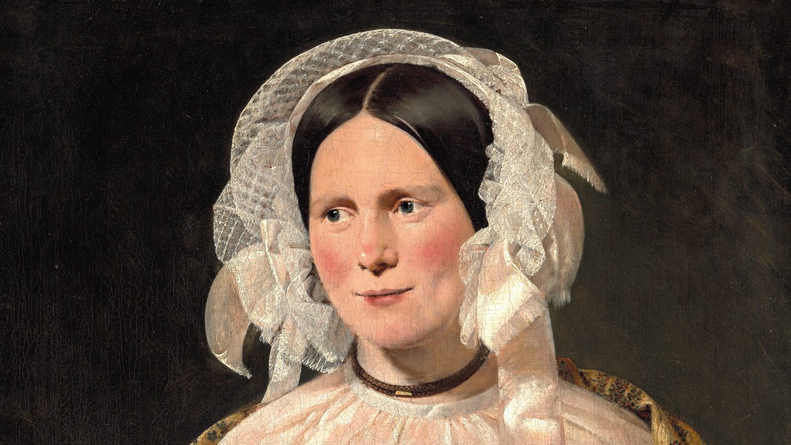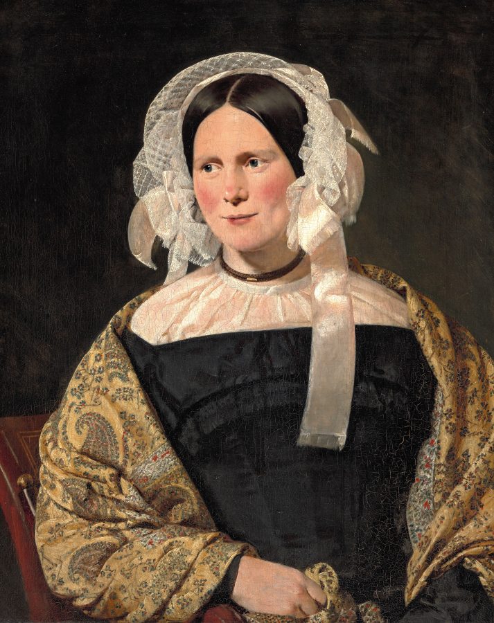 Et af de smukke portrætter i vores udstilling Elsket og udskældt – portrætmesteren C.A. Jensen viser Oline Cecilie Bruun, født Plum.