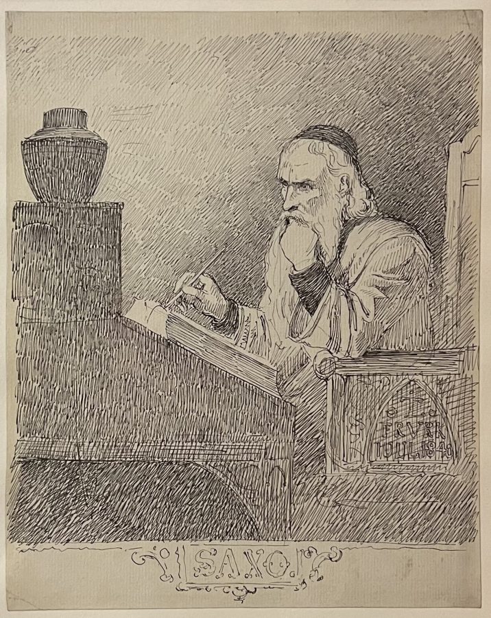 I vores samling har vi en fin tegning af J. Th. Lundbye fra 1840. Da havde Grundtvig nyoversat Saxo til sit helt eget moderne, folkelige dansk.