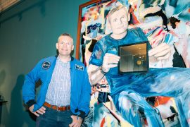 And it is not just any astronaut portrait – it’s one that breaks from tradition. Typically, American astronauts are portrayed post-return in full space gear, broadly smiling with their helmet in their lap.