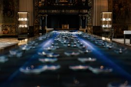 To celebrate the 250th anniversary of Royal Copenhagen, Frederiksborg Castle presents a staging of the world-famous Royal Copenhagen Christmas Plates – treasured collectors’ items since 1908. All of the 118 plates are gathered in one dazzling installation beneath the ornate ceiling of the castle’s Great Hall.